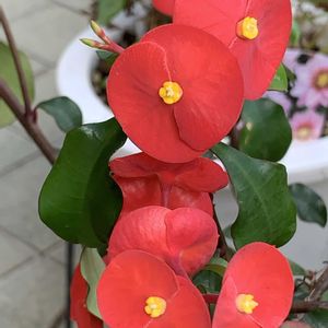 5月に植え替えた 棘なしハナキリンに 花芽が沢山ついて可愛い赤い花 が沢山咲いてきました♡♥️ 植え替え成功🌸◦°(´︶`*)~♬♪゚¨