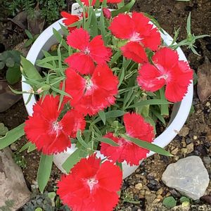 真っ赤なナデシコが 可愛い花を咲かせて います❤︎p ̫ ᴗתʅ𐑽ɭ ɿɭ ɿ😊💕