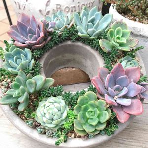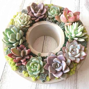 エケベリアを入れたパステルカラーのリースを作りました✨ セメントリース鉢の中サイズはシマムラ園芸さんで見つけました!小さいサイズもあったから買っておけば良かったなぁ〜