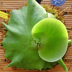 エリソティスさん😉🍀 右貯水葉展開中に左貯水葉も伸ばしてましたが、右貯水葉が波のようにうねりだし、ここ1週間位に途中のままで成長止まりました😵💦 調べたらエリソは霧吹きとかで加湿しないと、新しい葉が縮れて伸びれないとか😱 右貯水葉上ほうを見ると、細かい傷があり、そこから白いもや状の物が出ています💦 つついても動かないので、虫とかじゃないみたいだけど、急ぎオルトランしましたが病気ですか? 大丈夫かなぁ(>_<)💦 エリソさんごめんね🙏💦