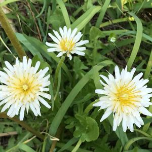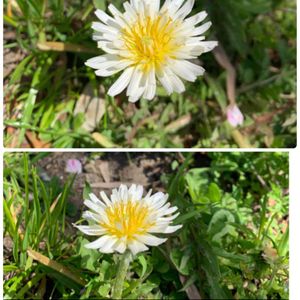 白花タンポポ 九州から関東までにしか生息してないらしいです。栃木県の川の土手で生まれて初めて見ました‼️ 庭でも育てたかったので、種を綿毛になってから取りに行き、庭に撒いてみました。 今度の春が楽しみです。