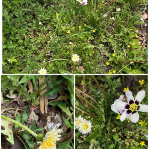 萩の白花タンポポ🌼第二弾 今日は群生地も見つけてラッキー🤞 ちなみに松陰神社から、 お墓に上がっていく道端です👍 ⬆️群生している白花タンポポ ↙️横顔アップ 日本タンポポの証拠🌼 ↘️白花タンポポの横にカワイイ花が☺️ ぺこりんさんにはスパラキシスと教えて頂きました🙇♀️