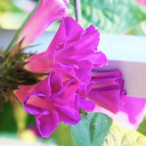 他の花は避難できたのに 動かせなかったアサガオ🪴 モリモリの葉っぱが重たすぎて 風で鉢ごとひっくり返ってしまいました😱 絡まっていたツルを頑張ってほどいたけど 折れたり破けたりして 半分以下の葉っぱに…😭 邪魔くさがらず、初めからネットにしとけば良かったと 反省です😣