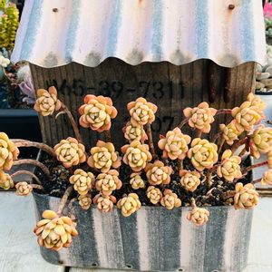 約3ヶ月経過したよ ✂️して植えた時と比べると 色付いて花芽も上がってる☺️ 可愛いマッコス😍 どんだけ好きなのよ私🤣 wsで自分で作ったプランターに 植えてるのが またいい!😆