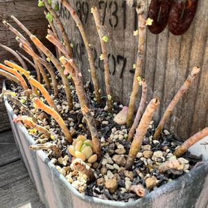 地味地味な写真だけど 記録の為🙏 3/12✂️した棒多肉のマッコスが 半分諦め半分期待してたら 赤ちゃんいっぱい👶出たよー🙌 どこまで成長してくれるかな☺️
