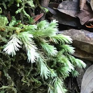 オオシラガゴケです🤩 シラガゴケのお化けのような見た目で存在感があります! 白っぽく見える理由は葉緑体が透明細胞に挟まれているからのようです🤔
