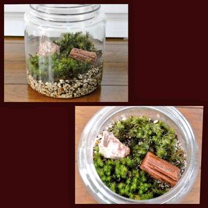 今日作った苔テラリウム2つ。 子供の夏休みの自由研究も兼ねて2つ3つ作るつもりが、どのくらい苔が必要なのか分からず買いすぎてしまい 結局10コ近く制作。 それでもまだ余ってる💦 左のは身内に押し付けてきました。
