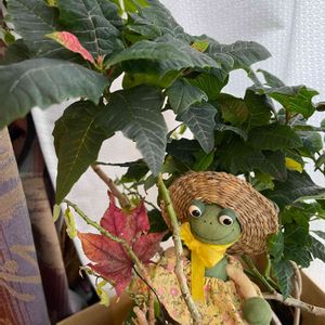 🐸6日はカエルの日 ということで 参加お願いします❣️ ちょこっとずつ 色づいてきた 健気なポインセチア と一緒に お転婆娘のカエルちゃん 後ろのプリンセチアは、根っこが無くなってきたので 残念ながら☆になって 行くようです。 5年間ありがとう😭