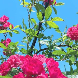 ローズガーデン薔薇です〜 安曇野モリモリ〜もう一種名前? たくさんの種類で名前覚えられない😅 滞在中のひるがの高原はストーブをつけて寒いくらいでした😵 昨日は☁️空が 🌹ガーデン散策には程よくでした😁 皆さんも気温差に気をつけてお過ごしくださいね😌🍀