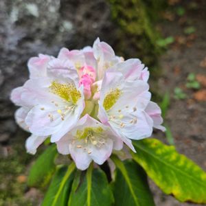 お散歩。 義母の庭 ソャクナゲ(石楠花)が満開 ①と②は似ていますが全く違います。 ①は小さな握り拳位の大きさ。背丈も10cm位て 葉の付き方が下向きで大きさも小さめ。 ②は小さいグレープフルーツ位の大きさ。 せたけは1m位。 葉は丸々と艶あり。 ハクサンシャクナゲ ③と④は同じシャクナゲ 背丈とは2m弱です。 これもハクサンシャクナゲかな?
