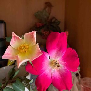 おはようございます この秋3度目に咲いたバラ🌹を 玄関に飾ってみました 蕾が開くと優しい色で咲きました お日様に当たらないと変化するんですね 不思議ですね〜☺️