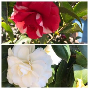 バラじゃないよ。ツバキだよ。 いつも霜でやられて花ビラにキズが 出来てしまうのですが 今年は綺麗に今までに無い程の数多く花と蕾です。