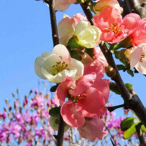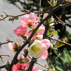 🏷️今日のお花・木瓜 義母宅の木瓜の花 淡いクリーム色からサーモンピンクに色変わりしていく𓂃٭𓂃٭𓂃٭ 木瓜の花が色変わりのお花だと知ったのは義母の庭のこのお花から そして、鋭い棘を持つ事も この木瓜に教えてもらいました(痛い思いをして) 大きな木瓜の実で作るジャムは 梅とリンゴの味がすることも𓂃٭𓂃٭𓂃٭ ここ数年は大きな実を沢山付けてくれます˗ˏˋ ♡ˎˊ˗ 2023.2.26