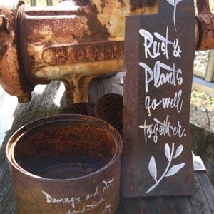 ともぞうえんさんの周年祭のときに、ナコリアンティークさんもお店に見えていて、作品お迎え。 前からずっとナコリさんの作品欲しいなぁと思っていたから念願の💗 この繊細な文字や絵がほんと素敵。 包丁?とサビ缶素敵。 二枚目と三枚目はともぞうえんさんとこの多肉ちゃん。あー可愛い😍 後ろのミンサーは以前旦那の実家からもらった使わなくなったミンサーを雨ざらしにして錆びさせたよ