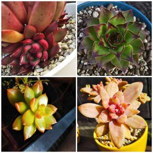 エケベリア新入生C組です ↖️ララータ ↗️オウンスロー ↙️レッドイーグルス ↘️花野ばら 以上12名 春に植え替え後の元気な姿を見ていただけますように💞 パン、パン👏(柏手)