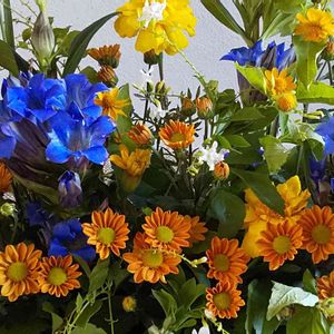 秋の景色のアレンジメント 菊と竜胆 写真を整理していたら昨年の今頃の画像がありました 横に2列で後列は背が高くなっているはずなのですが、写っていません😅