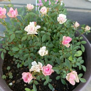 おはようございます😊 ミニバラ ワンダーファイブ🌹 写真のようにコンスタントに花が咲き続けています🎶 花がらを時々カットして、毎日水やりしているだけなんです! 手間いらず!!