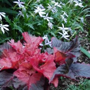 おはようございます🎵 今朝の庭のハゲイトウ 小花の花壇でこれから背丈を伸ばします❗ 花言葉 不老不死 情愛