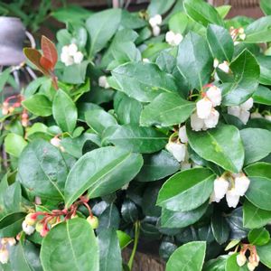 チェッカーベリー ゴールテリア ビッグベリー🍒 昨年のクリスマスに大活躍したチェッカーベリー❤️ スズランのような小さなお花が咲いて、花殻が落ちた後には小さな緑色の実がなっています🤩 今年もたわわに実るといいなぁ〜✨ 大粒の赤い実は冬の間ヒヨドリさんのご馳走になります🕊 (我が家に来るヒヨドリさんは痩せ気味なので可哀想で追い払うのをやめました😅)