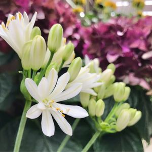 アガパンサス ダブルダイヤモンド🤍 咲き出しました✨ 草丈20㎝程の小型品種ですが、真っ白なダブル咲きのお花は存在感があります💕 我が家は狭くて大型のアガパンサスは置き場所がないので、小型品種に出会えて良かったです🥰 後ろのアンティークカラーのお花はハイドランジア ディープパープルです💜 赤っぽく咲いてしまいましたが段々と褪色して良い感じになってきました(ᵔᴥᵔ)