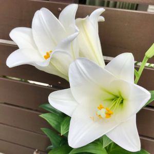 テッポウユリ ホワイトエレガンス🤍 イエローのユリと同時に咲くかなと思い同じ鉢に植え付けましたが開花時期は全然合いませんでした💔 真っ白な大輪がゴージャスです✨ お庭にユリの香りが漂っていると優雅な気分になります🥰