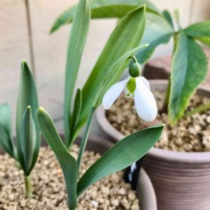 寒い中ひっそりと咲きだしたスノードロップ❄️ 小さくて可憐なお花が風に吹かれて揺れています💓 カワイイー(*≧∀≦*)