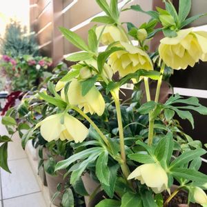 先日仲間入りしたイエローのクリスマスローズ💛 あっという間に満開になりました✨ 優しいパステルカラーのお花がテラスを華やかに彩ってくれます🥰