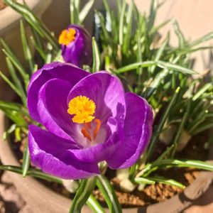 クロッカスも咲きはじめました💜 小さな球根ですが鮮やかな紫色のお花は存在感があります✨ 青紫系の混色植えにしているので、他の花色の開花が楽しみです🎶