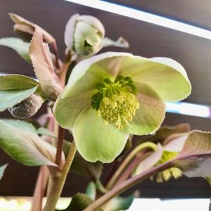 カラーリーフのクリスマスローズ リヴィダスも開花です💝 渋いお花と明るい葉色がオシャレです✨ 蕾がたくさんあって全部咲くととってもゴージャスなんです🌟