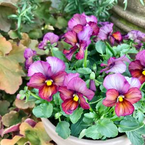 ビオラ 華あられ🌸 明るいブラウンだったお花はすっかりピンク色に変わりました👀 防寒せずに野晒しですが、元気に育ってたくさんのお花を咲かせてくれています✨