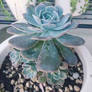デッかいエケベリア ポロックス ポルックス カタカナ イングリッシュだから 2つあるのね この子のネームタグはポロックス だったけど 一瞬 枯れそうになったけど テラスから庭に出して 放任主義にしたら 花も咲かせて 復活した