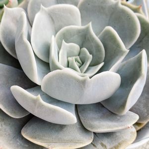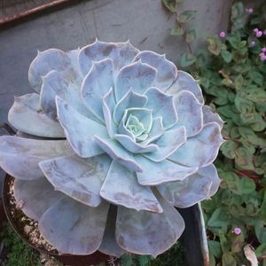 エケベリア ポルックス JUSHIさんのデカベリアのまとめを見て、家の子も撮ってみました♪前よりも葉がヒラヒラして豪華な感じになってきたかな? 色合いが地味なので写真映えはしませんが、4.5号鉢いっぱいのデカベリアさんです♡左側や奥に見えているのが2.5号鉢の子たちです♪
