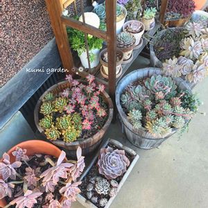 会社多肉の寄せ直し うちにある苗を足して、 ぷちぽちさんの蝶々の🦋革製ピンクをin 一昨日、会社の窓辺に持って行きました。 お花畑🌸🌼🌸