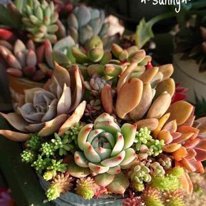 寄せ植えが朝日を浴びて良い感じ❇️ セダムがいい仕事してて、11月に作った時より断然今がいい(*Ü*)ﻌﻌﻌ♥