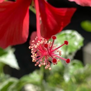 花友神さまから頂いた📦✨ 斑入り葉の (⸝⸝˃ ᵕ ˂⸝⸝)💕 ハイビスカスが 咲きました〜(⁎˃ ꇴ ˂⁎)❤️✨ ハイビスカスの花蕊 可愛いなぁ~(*´艸`*)♬.*゚ 🏷️斑入りフェチ 斑入り葉スキスキスキ~💚