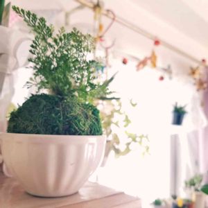 できあがってる乾燥した苔玉みたいなものに ダバリア ラビットフット🐰を ホームセンターで買ってきました 苔にも興味が出てきてしまった😅