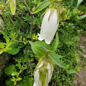 おはようございます☁️ まだ、スッキリしない天気です😥 ホタルブクロが、咲き出しました🤍💚🤍💚🤍💚 「花の中に蛍を閉じ込めるとその明かりが、外に透けて見える」ところからこの名前が付いているらしいです😊