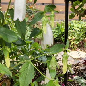 こんにちは👋😃 前の家からピエールの根っこに付いてきたと思われる 白いホタルブクロ 今年も咲きました😊