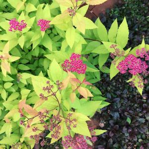 シモツケゴールドフレーム🌼 花が咲き出しました(*ΦωΦ*)/ 新葉が出た時の色も好きだけど、 花が咲いた時の色合いも好き…❤️