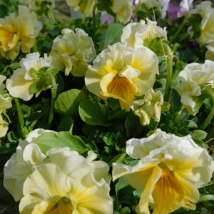 パンジービオラ寄せ植えの〆は フリル咲の恋みやびとシエルブリエ、デコルテの3種。 偶然にも好みの色がHCに残っていたのでつい…