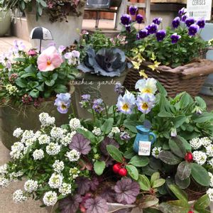 久々に寄せ植え ビオラ 恋みやび スイートアリッサム シックカラー エンジェルクローバー🍀 ビューティ コプロスマ ビートソンズゴールド