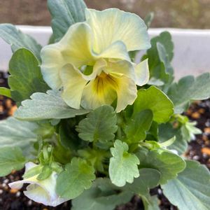 花日和さん フリル咲きビオラ ◻︎イリスプリエール シエルブリエはカラーが濃い子を選んだので、こちらは淡いお色の子を連れてきました😊 2人並んで咲いてます💙💛 増やしておいたグローバーとワイヤープランツを忍ばせてます
