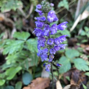 宝登山の山の中で、見かけました。 落ち葉ばかりの中、ひっそりと咲いていました。 なんて言う花かわかりますか? (アキノタムラソウと教えて頂きました❣️)