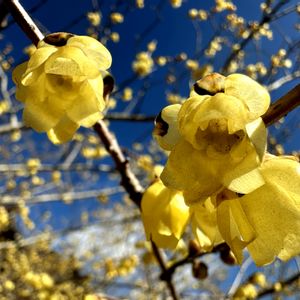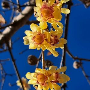 長瀞町宝登山の蝋梅園にて。 昨日(2023/02/05)の写真です。 青空に映え、そして優しい香り☺️ 西の梅園は五分咲き。東の梅園は三分咲き。みずみずしい花と香りを楽しむなら、やはり午前中がお勧めです。