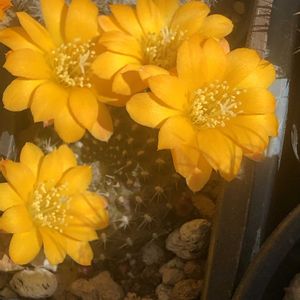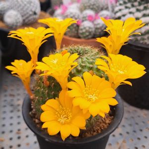 サボテン レブチア マルソネリー 昨年植え替えたんだけど鉢色間違えた〜😅 黄色と黄色になってしまった〜🙀 花が終わったら緑の鉢に変更したいな😊