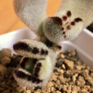 プレーリードッグ …としてうちに来たモケモケちゃん♪ 黒い斑点のエッジが可愛い♡ 最近(ここ数年?)の品種らしいです。 いつか...白系葉っぱ(毛?)に黒の斑点の 「ダルメシアン」とか出ないかな(笑 絶対可愛い(*´艸`*)