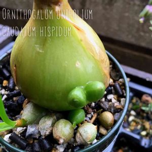 教えていただきました!! オーニソガラム・コーダツム(シー・オニオン/偽海葱/子持ち蘭/子持ち海葱 コモチカイソウ) 子持ちという名前がつく事に納得しました!! ____________________________________ これもずっと名前がわからない植物。 母が10年ほど前に頂いたものです。 ここ数年やっとお花が咲くようになりました🎵 お花もアップするのでわかる方教えてください☺︎