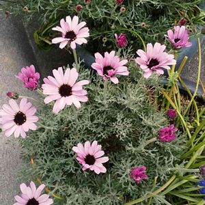 咲き始めましたよ ローダンセマム🎵 3種寄せ植え みんな別々の方向向いてる😓 喧嘩しましたか?