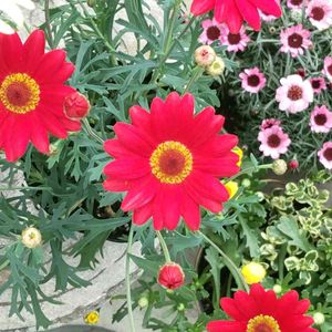 マーガレット 寄せ植えしたくて購入したけど まだ、ポットのまま。 色鮮やかでかわいいね~♡ マーキュリーも咲いてます♡