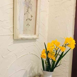 コジカフェで、アロマレッスンの日、沖縄もコロナの影響が出ており、マスク着用と大雨の中、窓は全開、アロマで除菌しながら行いました❗️😆 コジカフェの壁には花の絵があちらこちらに飾られ、お花も活けられてて、ステキ〜😍